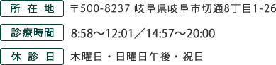 ※日曜日も休診する場合がございますので、ご不明な場合はお電話ください。